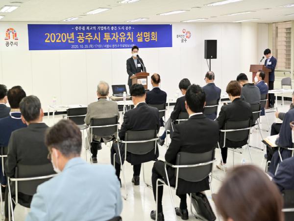시는 현재 조성 분양중인 남공주산업단지 등 6개 산업단지 조성 현황을 자세히 설명한 뒤 편리한 광역교통망과 인근 도시에 비해 저렴한 산업용지, 기업하기 좋은 기반시설 등 공주시의 기업입지 장점을 적극 부각했다.