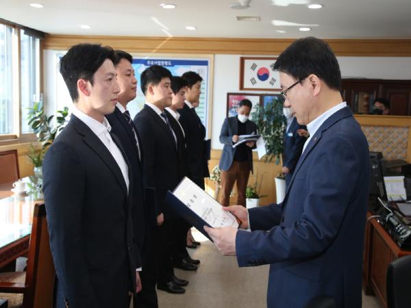조영진 제1부시장은 11월 1일자 신규 임용자에게 임용장을 수여하며 “취업난에도 불구하고 높은 경쟁률을 뚫고 합격해 청원경찰로 임용된 것을 진심으로 환영하고 축하한다.”며, “친절·봉사정신으로 업무에 임하되 폭언·폭행을 일삼는 민원에 대해서는 엄정하게 대처해 달라”고 말했다.