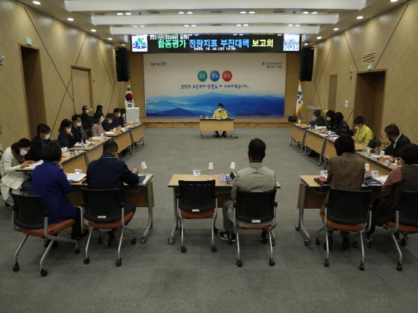 한편, 군은 이번 보고회는 코로나19 사회적 거리두기 준수를 위해 입장 전 체온검사, 마스크 전면 착용, 회의 중 수시 환기 등을 시행하여 코로나19 확산 예방을 위해 최선을 다하였다.