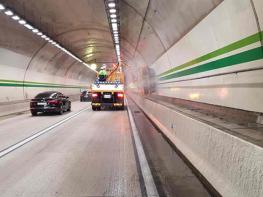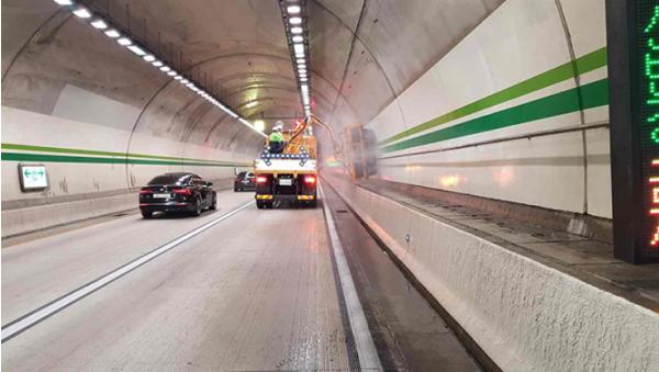이번 작업은 자체 인력 18명과 세척장비 8대를 투입, 터널 벽면과 배수구 등을 중점으로 청소해 터널 내 미세먼지를 제거한다.