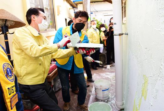 이번 봉사활동에는 김대근 사상구청장과 국제 라이온스 협회 임원진들이 집수리 지원사업 대상 두 가구를 직접 방문하여 벽지 및 장판 교체 작업 등을 도왔으며 국제 라이온스 협회에서 사업비 전액을 지원하였다.