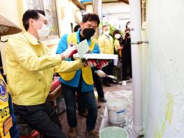 부산 사상구는 지난 29일 국제 라이온스 협회(355-A지구 15지역) 신창용 부총재 및 임원진들과 함께 자력으로 집수리가 어려운 가구를 대상으로 집수리 봉사활동을 펼쳤다.