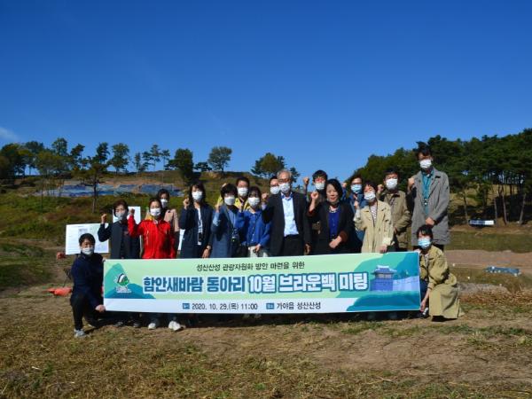 함안군은 지난 29일 오전 11시, 관내 ‘함안 성산산성’에서 군 직원으로 구성된 함안새바람 동아리 단장인 김준간 부군수를 비롯한 회원 20여 명과 사업부서 담당자들이 참석한 가운데 ‘성산산성 관광자원화 브라운백 미팅’을 개최했다.