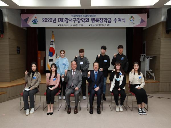 (재)강서구장학회는 학업성적이 우수하거나 타의 모범이 되는 지역 내 고등학생 15명, 대학생 9명 등 총 24명에게 각각 100만 원의 행복장학금을 전달했다.