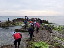 울진군은 마을어장에 서식하는 자연산 미역의 생산량 증대를 위해 공공근로사업의 일환으로 10월 14일 진복어촌계를 시작으로 현내어촌계 등 32개소에서 ‘마을어장 갯바위닦기(일명 미역 짬 김매기)와 해안청소’를 실시했다.