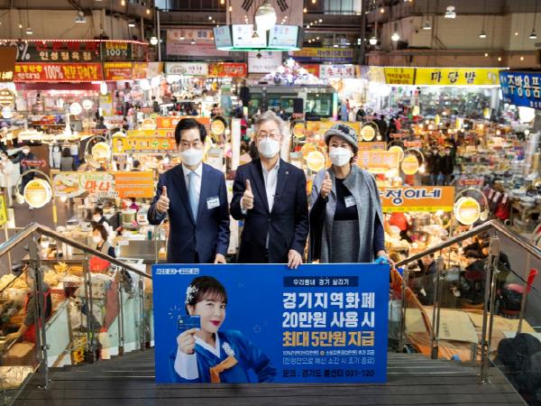 이 지사는 이어 참석자들과 함께 의정부제일시장과 주변의 지역화폐 가맹점을 방문, 지역화폐로 물건을 구입하는 소비캠페인을 진행하며 ‘소비지원금(한정판 지역화폐)’의 장점을 홍보했다.
