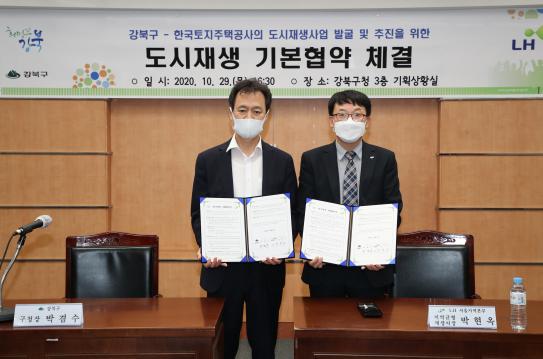 강북구가 지난 29일 구청 기획상황실에서 한국토지주택공사(LH)와 도시재생 기본협약을 체결했다고 밝혔다.