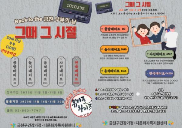 금천구는 금천구건강가정·다문화가족지원센터에서 가족 친화적 사회 분위기 조성과 행복한 부부관계 향상을 위해 ‘그때 그 시절 1010235(열렬히 사모)’를 운영한다고 밝혔다.