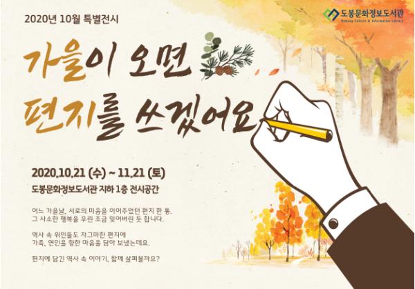 도봉구 도봉문화정보도서관이 단풍이 물드는 가을을 맞이해 역사 속 인물들의 편지를 소개하는 가을 특별전시 '가을이 오면 편지를 쓰겠어요'를 선보인다.