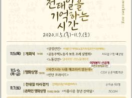 7일 오후 3시와 저녁 7시에는 영화 ‘아름다운 청년 전태일’을 화상회의 시스템을 통해 스마트폰이나 PC 등 온라인으로 볼 수 있다.