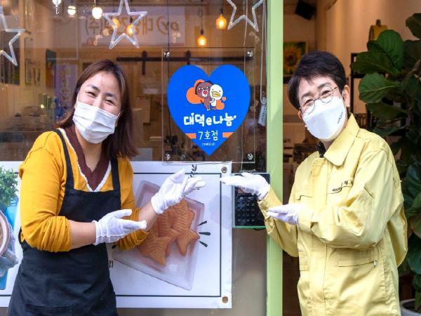 대전 대덕구는 지난달 29일 송촌동에 위치한 ‘카페모네’커피숍을 대덕e나눔 7호점으로 지정하고, 선결제 나눔문화 확산을 통해 침체된 지역경제 살리기에 나섰다.