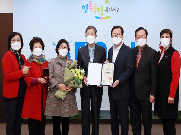 대전 서구는 조산구 대한적십자사봉사회 대전서구지구협의회 회장이, 지난 29일 정부세종컨벤션센터에서 열린 ‘제8회 지방자치의 날 기념식’에서 지방자치 발전 유공 대통령표창을 수상했다고 1일 밝혔다.