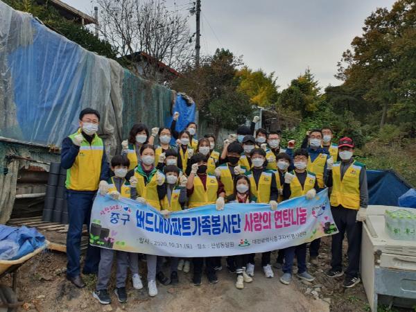 이날 봉사활동은 중구자원봉사센터 소속 버드내아파트 가족봉사단 회원 20여명이 참여해 산성동 소재 가정에 연탄을 직접 배달했다.
