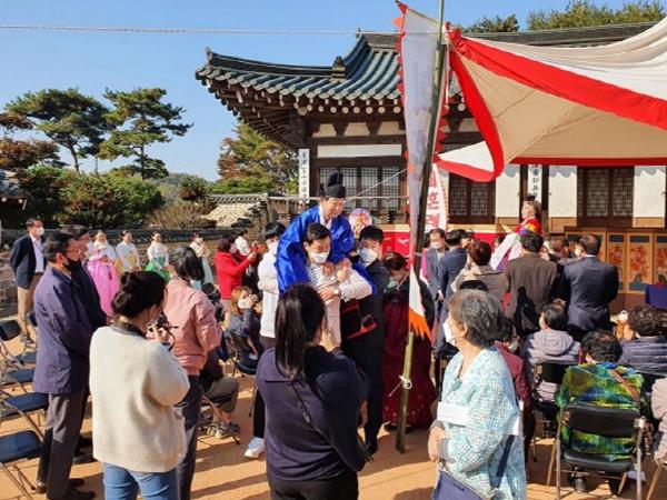 행사는 길놀이·전안례·교배례·서천지례·서배우례·합근례 순으로 진행됐으며, 부대행사로 고천문 낭독, 축사, 답가 등 시간도 가져 노부부의 건강과 행복을 기원했다.