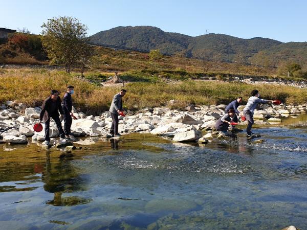 이번에 방류한 다슬기는 지역 내 업체에서 생산된 각고 0.7cm 이상으로 수산생물 전염병 검사를 마친 건강한 종자다.