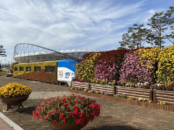 시는 코로나19의 지역사회 확산 방지를 위해 매년 진주종합경기장 일원에서 개최되던 국화작품전시회를 최소화 해 시 직영 국화재배장에서 정성스럽게 키운 기획작품, 다륜작, 모양작, 석·목부작 등 7만 여 점의 작품을 시민들이 잘 볼 수 있는 시청 앞, 촉석루, 종합경기장 등 10여 개의 장소에 분산 배치한다.