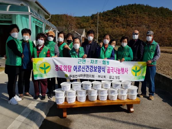 두동면 새마을지도자협의회(회장 문성준)와 새마을부녀회(회장 황남미)는 지난 30일 경로의 달을 맞이해 회원들이 손수 끓인 곰국을 관내 독거노인 등 불우이웃 30여 가구에게 전달했다.