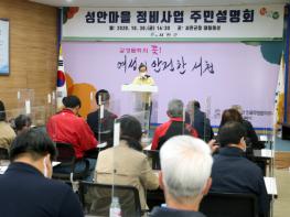 이날 주민설명회는 노박래 군수의 인사말을 시작으로, 한덕수 기획감사실장의 성안마을 정비사업 개요와 추진 방향, 향후 추진 일정을 설명한 뒤 주민들의 다양한 의견을 듣는 시간으로 이어졌다.