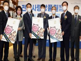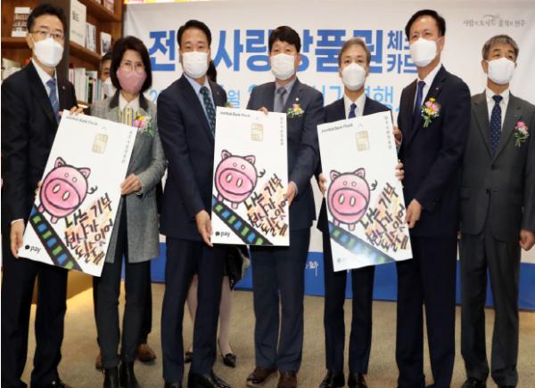 전주시는 2일 시청 책기둥도서관에서 김승수 전주시장과 강동화 전주시의회 의장, 이몽호·임재원 전북은행 부행장, 하현수 전국상인연합회장, 임규철 소상공인연합회 전주시회장 등 관계자가 참석한 가운데 전주사랑상품권 출시 기념행사를 가졌다.