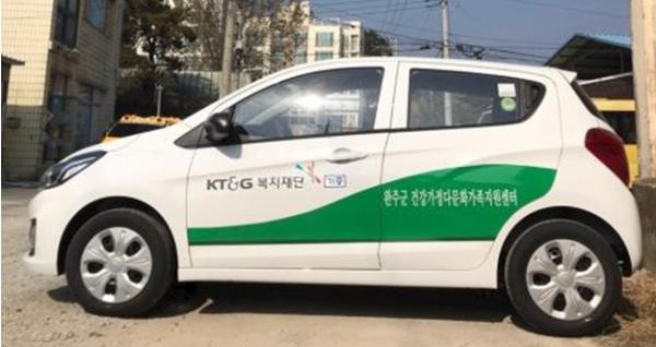 2일 완주군에 따르면 KT&G 복지재단은 찾아가는 복지서비스 실현을 위해 차량지원 공모사업을 실시, 지난 2004년부터 사회복지현장의 기동성 확보에 적합한 경승용차를 지원해오고 있다.