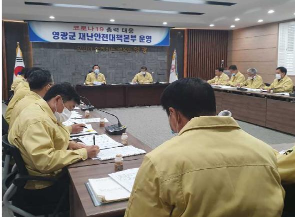 영광군은 지난 2일, 군청회의실에서 정부의 사회적 거리두기 3단계에서 5단계 체계로 개편 운영 방침에 따라 간부공무원들을 대상으로 거리두기 단계 개편 내용에 대해 교육을 실시했다.