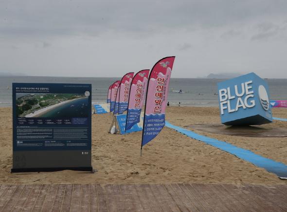 완도군은 국내 최초 2년 연속 청정하고 안전한 해변에 주어지는 국제 인증인 ‘블루플래그’를 받은 신지 명사십리 해수욕장과 보길 예송리, 금일 명사십리 등을 안전하고 쾌적하게 정비하였다.