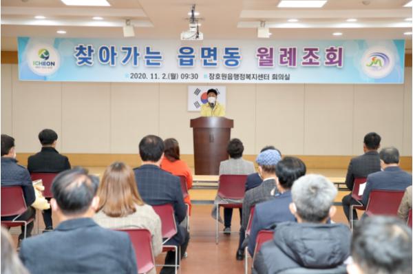 그 첫 출발은 남부권의 중심지 장호원읍이었다. 11월 2일 장호원읍행정복지센터 회의실에서 직원 및 표창수상 주민 등 50여 명이 참석한 가운데 11월 찾아가는 월례조회를 개최하였다.