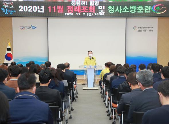 함양군은 2일 오전 10시 군청 대회의실에서 군수, 부군수, 간부공무원들과 본청, 외청 직원이 참석한 가운데 11월 정례조회를 실시했다.