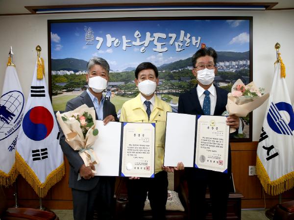 김해시는 2일 시장실에서 6·25참전유공자 무공훈장 찾아주기 사업의 일환으로 참전유공자의 화랑무공훈장을 국방부장관을 대신해 그 자녀에게 전달하는 전수식을 가졌다.