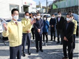 이어 평촌1길 일원 도로정비공사 대상 사업지를 방문한 허태정 시장은 포장면 노후로 인한 포트홀과 도로 침하구간으로 도로통행이 불편하고 안전사고가 우려되는 현장을 돌아보며 주민들의 불편사항을 들었다.