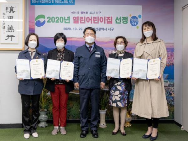 부산시 서구는 부모가 안심하고 자녀를 맡길 수 있는 보육환경 조성을 위해 4개 어린이집을 `열린어린이집'으로 선정해 지난 29일 오후 4시 구청장실에서 지정서를 전달하고 구청장상을 수여했다.