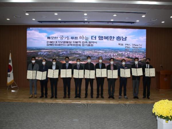 도는 2일 개최한 ‘충청남도 미세먼지대책위원회’ 정기총회에서 현대제철 등 123개 기업과 ‘대기오염물질 자발적 감축’ 협약을 체결했다.