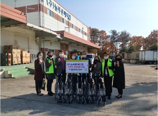 남양주시 수동면에 위치한 의료용품 도매업체 ㈜늘푸른메디컬(대표 장기훈)은 2일 보행약자를 위한 휠체어 5대를 호평동지역사회보장협의체(위원장 김현일)에 의뢰하여 동부희망케어센터에 기탁했다.