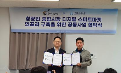 서울 동대문구에 소재한 청량리종합시장(상인회장 김인근)이 4차 산업혁명시대를 맞아 전통시장의 시장 경쟁력을 확보하기 위해 ㈜로드시스템과 디지털스마트마켓 협약식을 체결했다.