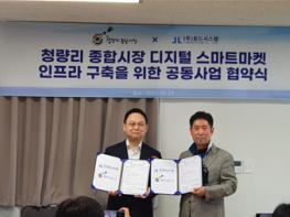 지난달 29일 청량리종합시장 상인회 교육장에서 디지털 전통시장 및 스마트 마켓 인프라 구축을 위한 공동사업 업무협약식이 열렸다.