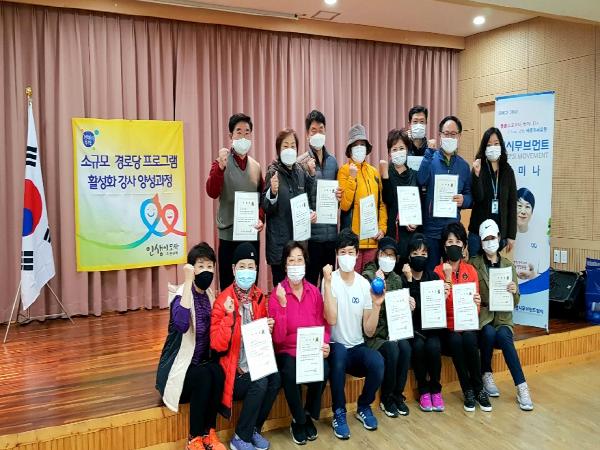 부천시 인생이모작지원센터는 중장년층 24명을 대상으로 ‘소규모 경로당 활성화 강사 양성과정’을 운영하고 10월 30일 수료식을 가졌다.