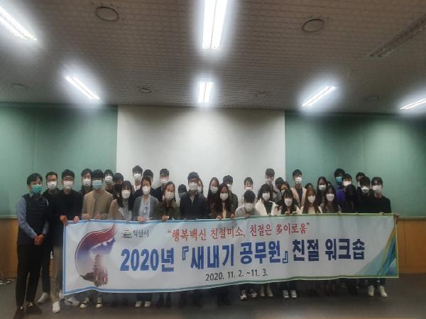 익산시는 2일부터 이틀 동안 예술의전당(세미나실)에서 신규공무원을 대상으로 미소맞이 친절워크숍을 개최하였다.