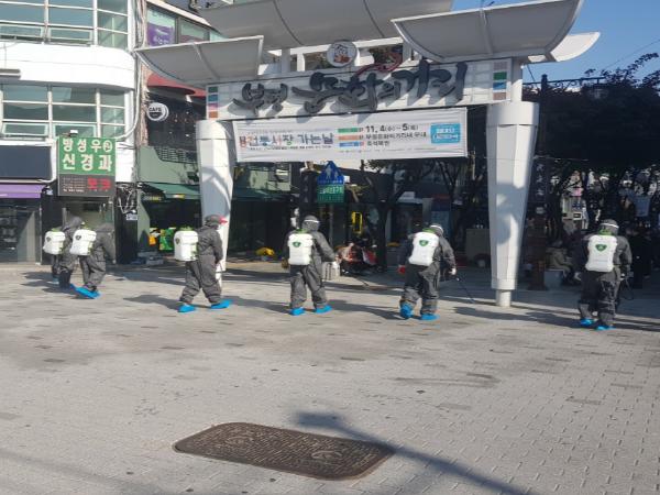 부평구가 코로나19 감염 예방을 위해 전통시장 방역소독을 진행한다.