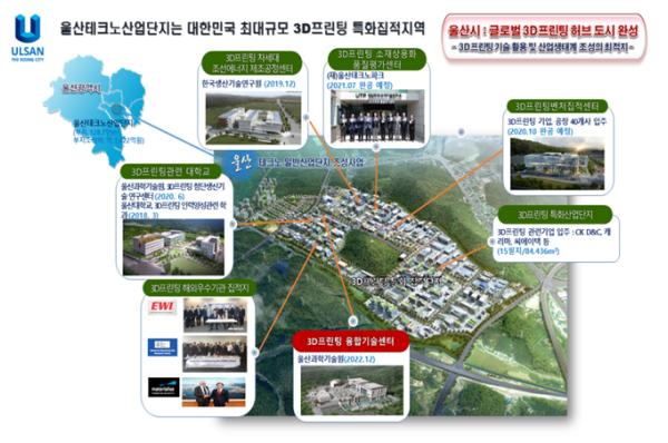 울산시는 주력산업을 고도화하기 위해 지난 2015년 12월 지역전략산업으로 3디(D)프린팅 산업을 선정하고, 3디(D)프린팅산업의 기반구축을 위해 3디(D)프린팅 제조공정센터, 3디(D)프린팅 벤처집적 지식산업센터 등 2개의 센터를 건립했다.