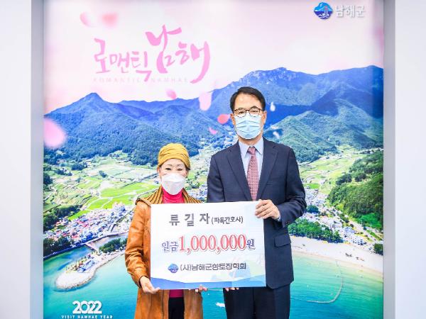 2일에는 독일마을에 거주하는 파독 간호원 출신 류길자 씨가 남해군청 군수실을 찾아 100만 원의 장학금을 건넸다.
