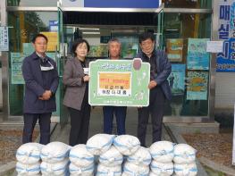 시문마을에서 농업과 축산업을 운영하며 4년째 성실히 마을이장의 역할을 맡고 있는 이대홍 이장은 “태풍, 벼멸구로 예년에 비해 힘든 벼농사였지만 어렵게 수확한 쌀을 나보다 더 어려운 이웃과 함께 수확의 기쁨을 나누고 싶다”며 기탁 의사를 밝혔다.