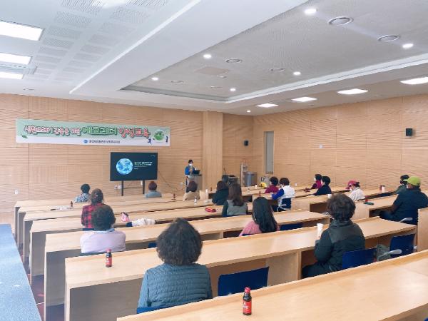 이번 교육에는 단체 회원 25명이 참여하였으며 생활쓰레기의 심각성을 알리고 쓰레기 감축 실천방안에 관한 강의와 더불어 버려지는 자투리천과 캔으로 무드등을 만드는 새활용 체험이 진행됐다.