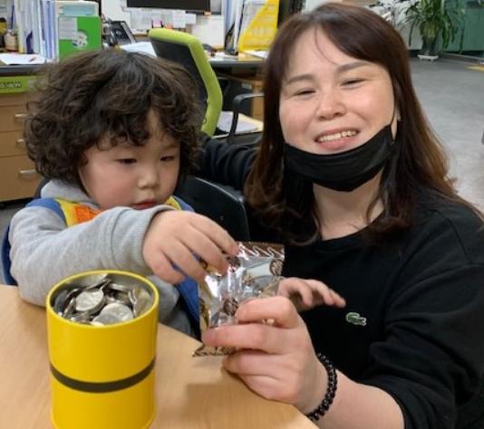 지난달 30일 양산시 덕계동 관내 아동과 부모가 간식과 직접 모은 동전을 덕계동 행정복지센터에 기탁했다.