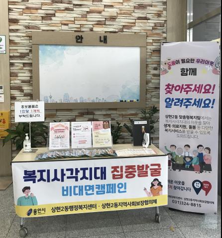 이번 캠페인은 코로나-19 확산 예방을 위해 비대면으로 진행될 예정이며, 행정복지센터를 방문하는 주민들에게 복지 사각지대 안내문과 마스크 줄을 자율적으로 배부한다.