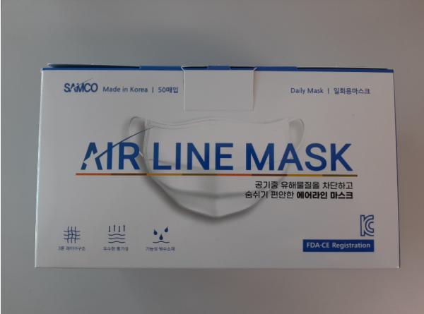 ‘(주)샘코’의 ‘에어라인 마스크’는 부가세를 포함하여 KF-94 마스크는 1매당 550원, 1회용 마스크는 1박스(50매)당 11,000원에 판매한다. 구매를 희망하는 개인이나 단체는 ㈜샘코 마스크 판매 담당자((055-850-7706)에게 유선 연락 후 직접 주문하면 된다.