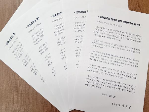정해문 함양읍장은 “코로나19 상황이 하루빨리 종식하길 바라며, 다가오는 2021년 새해에도 자매결연지와 함께 모든 어려움을 슬기롭게 극복하여 상호교류와 협력할 수 있는 장이 조속히 마련되기를 희망한다.”는 내용의 서한문을 함께 전달하였다.