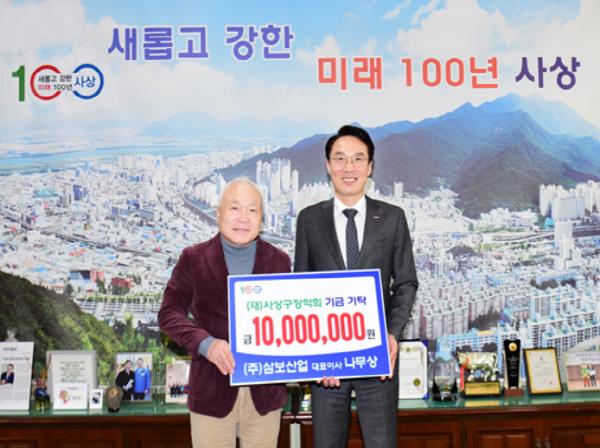 부산시 사상구는 ㈜삼보산업이 3일 구청을 방문해 (재)부산사상구장학회에 지역인재육성을 위한 장학기금 1천만원을 기탁했다고 밝혔다.