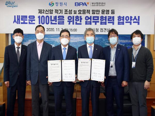 창원시는 3일 오후 3시 접견실에서 부산항만공사와 ‘새로운 100년을 위한 업무협력 협약’을 체결했다고 밝혔다. 제2신항(진해신항)의 적기 조성과 효율적인 항만 운영 등 상호 협력을 강화하기 위해서다.
