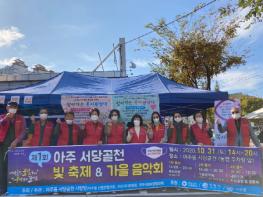 아주동 지역사회보장협의체(민간위원장 이덕남)는 복지사각지대 발굴 및 민간자원(기부자)발굴 홍보 활동을 위해 10월 31일 아주동 서당골천 빛 축제 및 가을 음악회 행사장에서 캠페인을 실시했다.