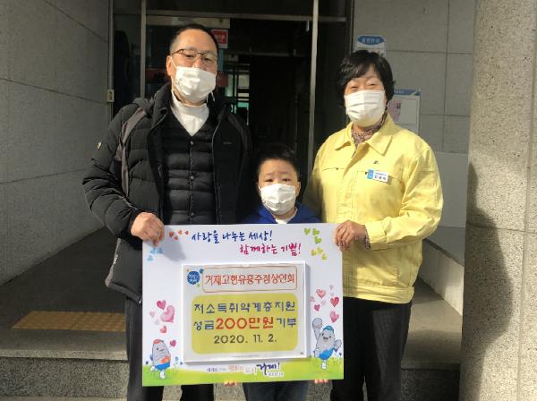 거제고현 유흥주점상인회는 지난 2일, 동절기 취약가구지원을 위한 성금 200만원을 거제시에 기부했다.
